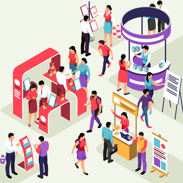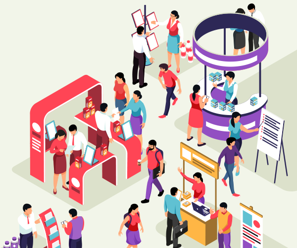 各ブースの担当から説明を受けると、担当がお客様の入場証二次元コードをスマートフォンでスキャンします。