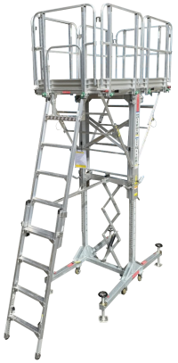 高所作業台(仮設工業会認定品)が登場!! ・揺れ・ガタツキを最大限軽減 ・作業床折り畳み式で組立・収納がスピーディー ・構成パーツの脱着も簡単 ・軽量かつコンパクトな設計