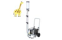 充電式でも”長く、明るく、安全に”点灯! 移動台車に照明とバッテリーが搭載可能なので楽に持ち運べます ターボ時:8,000lm→約9時間 Hi時:4,000lm→約18時間 Lo時:2,000lm→約36時間