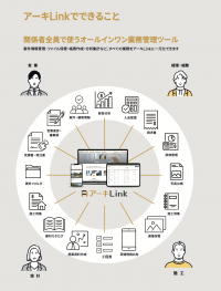 工事に関わる全ての関係者でご利用いただく、オールインワン業務管理ツールです。 案件情報管理・ファイル保管・帳票作成・分析集計など、すべての業務をアーキLinkに一元化できます。