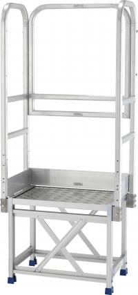 1段の作業台でも手すりを新常識に 現場での安全意識の高まりのニーズにこたえて、業界初の1段作業台用手すりをラインナップします。工場などの