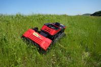 ラジコン操作作業で時間当たり8,000㎡作業可能。時間効率UPと人件費削減できます。 最大の特徴はウインチロープ使用で最大傾斜60°まで作業可能なうえ転倒防止にもなり安全性も高い商品です。