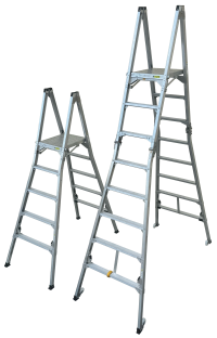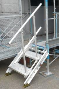 ちょっとした段差にらくらく設置。 次世代足場の1段目乗り込みにも最適。 2段タイプ(H244~752)3段タイプ(H334~1061)