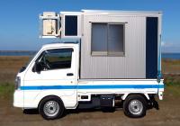 ソーラーパネル・電源装置・エアコン・換気扇・LED照明 路肩や狭い駐車場やちょっとしたスペースに快適休憩所を… 暑い日もエアコン装備で快適空間・熱中症対策に! 人と環境にやさしい軽トラハウス